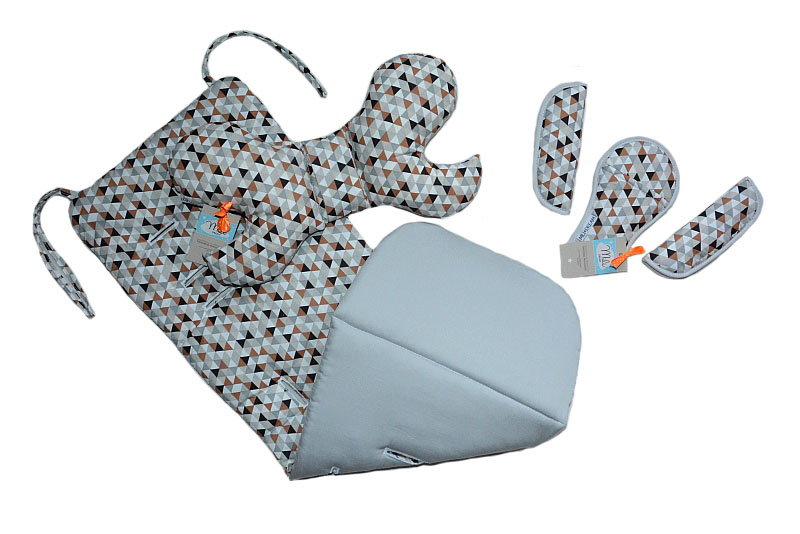Wkładka posiada otwory na pasy bezpieczeństwa oraz regulację wysokości szelek dopasowaną do konkretnego modelu wózka. Posiada dodatkowe troki do podwiązania wkładki. Świetnie zabezpiecza tapicerkę wózka przed zabrudzeniami i okruszkami.