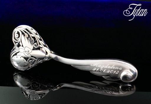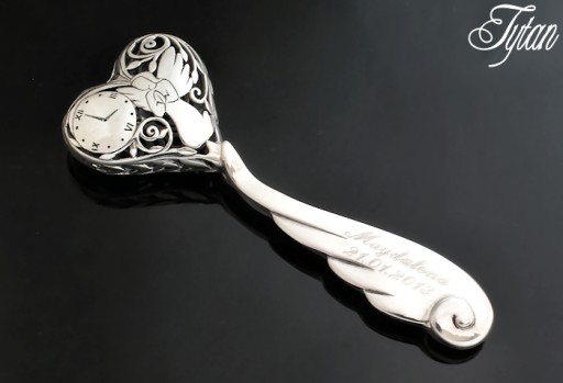 Брязкальце надзвичайно велике і точно виготовлене повністю зі срібла 0,925 проби.