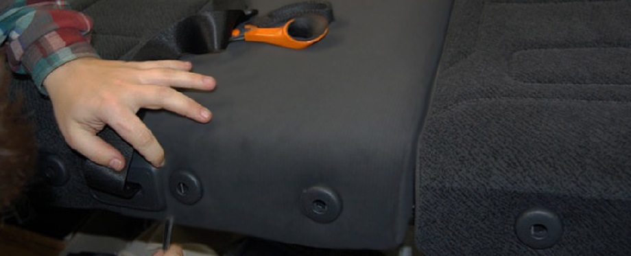 - Pokrowce wykonane są z oryginalnego weluru strzyżonego, występującego w autach wyższej klasy. Jest on dodatkowo wzmacniany od spodu pianką PU i siatką, co zapobiega ewentualnemu wykruszaniu się. Środek (wzór)- materiał + gąbka ok. 10 mm (wytłaczany wzór).