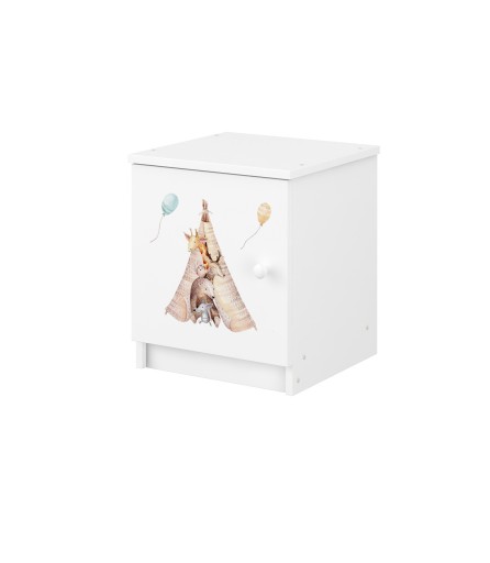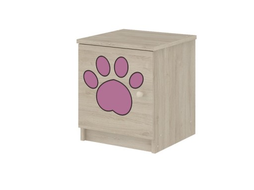 Тумбочка (накастлик) виготовлена з ДСП товщиною 16 мм. Гравірований фасад виконаний з МДФ кольору «світлий дуб». Моделі з кольоровим друком доступні в кольорі «білий» або «венга». Принт на лицьовій стороні виконаний абсолютно безпечними для дитини екологічними фарбами, додатково закріплений спеціальним ламінатом, щоб не вицвітав і не стирався, можна без побоювання прати ганчіркою і рідиною.