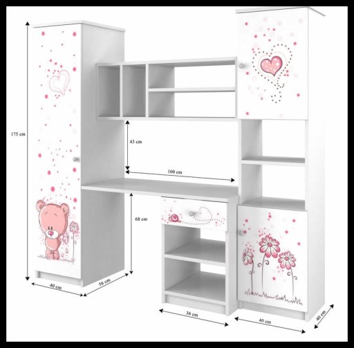 Стінка виготовлена з ДСП товщиною 16 мм. Фасади мають барвистий принт, виготовлені екологічними фарбами, які абсолютно безпечні для дітей. Друк має приємні яскраві кольори, які закріплені спеціальним ламінатом, щоб вони не вицвітали та не стиралися.