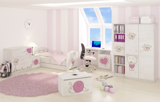 Ліжко має дві поручні для захисту дитини від падіння під час сну, вони на ручках, що дозволяє міняти сторони за бажанням. Ліжка право/лівосторонні. Кожен елемент закруглений, щоб забезпечити максимальну безпеку дитини, ми уникаємо гострих і небезпечних країв. Ліжко оброблено кантом ПВХ. Протиалергічний матрац з шару поролону, з чохлом, що застібається на практичну блискавку, легко знімається і прається.