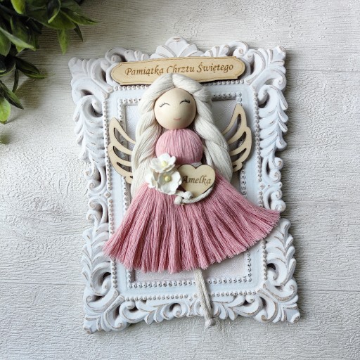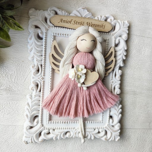 Anio Str в вінтажній рамці, ручної роботи в техніці макраме, може стати унікальним подарунком на хрестини, народження, день народження, в якості подяки або на іншу особливу подію.