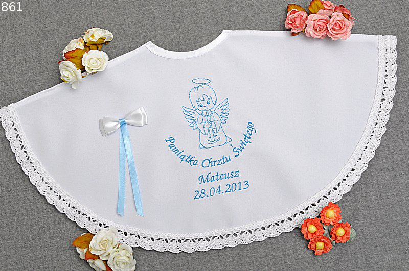 Dzięki temu biała szatka do chrztu staje się niepowtarzalna i jest wyjątkową pamiątką chrztu maluszka.