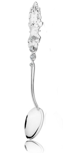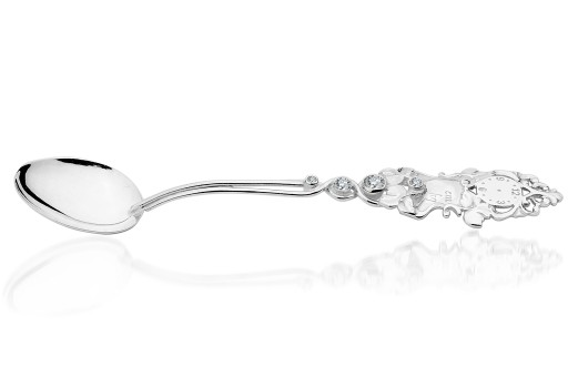 Срібна ложка - ідеальний подарунок на хрещення або народження як для хлопчика, так і для дівчинки. Виготовлений повністю зі срібла 925 проби (має пробірний офіс у Варшаві). Чотири стрази SWAROVSKI ELEMENTS вбудовані в ложку.Гравірування даних на ложці та присвяти на коробці безкоштовне.