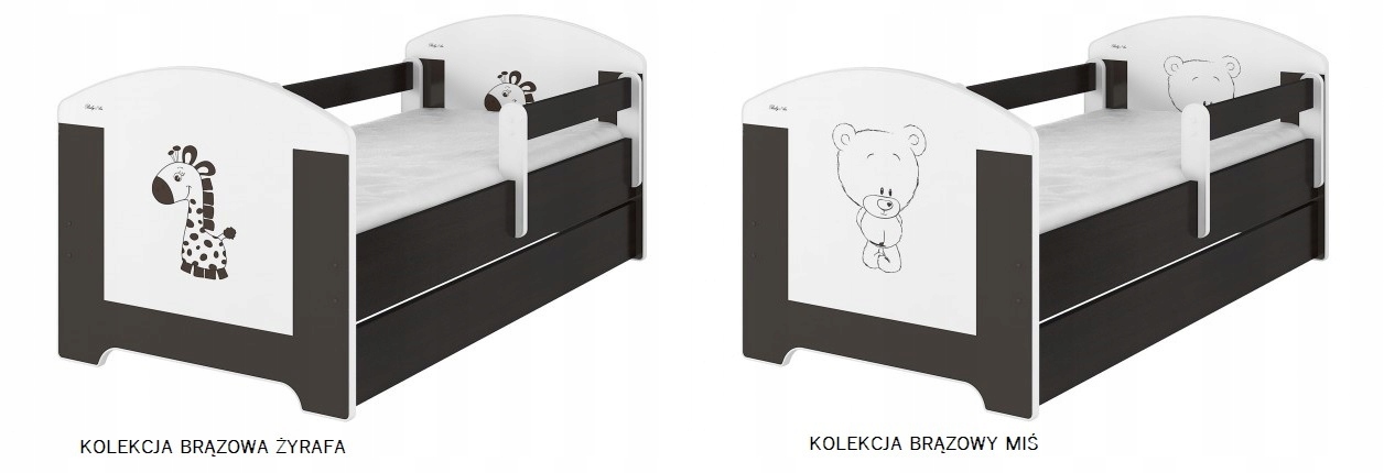Na frontach łóżeczek umieszczone są kolorowe nadruki, można bez obaw myć je ściereczką. Nadruki zabezpieczone są specjalnym laminatem, aby zapewnić mu trwałość i zapobiec przed wycieraniem się obrazka.