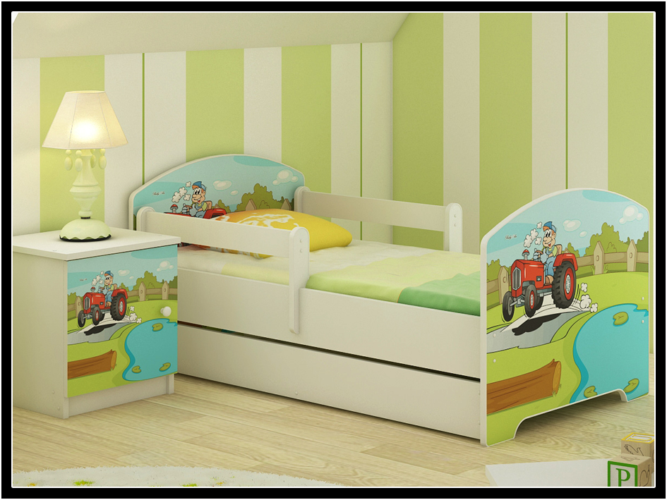 Na frontach łóżeczek umieszczone są kolorowe nadruki, można bez obaw myć je ściereczką. Nadruki zabezpieczone są specjalnym laminatem, aby zapewnić mu trwałość i zapobiec przed wycieraniem się obrazka.