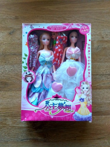 У набір входять дві великі ляльки, одна маленька лялька і три одягу. Ляльки мають рухливі руки.