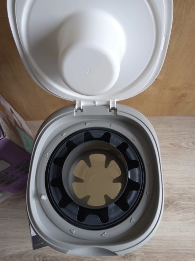 Відображено, подряпини з обох боків контейнера, як видно на реальному фото, порожній вкладиш для антибактеріальних пакетиків. Кошик не використовувався.