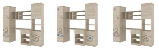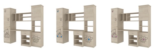 Стінка ідеально поєднується з іншими предметами меблів з наших колекцій, що дає можливість вільно компонувати гарнітур відповідно до розмірів кімнати, а також потреб і віку маленького мешканця. У наші колекції додатково входять різноманітні масиви, серед яких: ліжко, ліжечко, шафа, комод, книжкова шафа, письмовий стіл, контейнер для іграшок і тумбочка.
