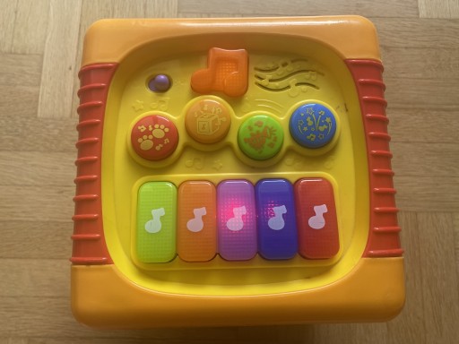 Іграшка дозволяє дитині розвивати моторику і відчуття дотику, а кольорове світло і звуки розвивають зір і слух.