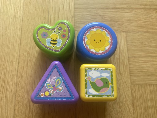 Є сліди нормального використання (легкі потертості по кутах, потерті наклейки на елементах сортера).