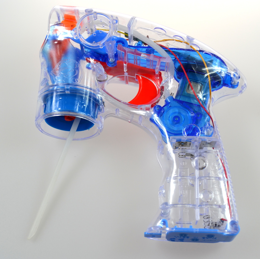 Bezawaryjny pistolet do puszczania baniek mydlanych wystarczy wkręcić dołączony w zestawie płyn ,naciskając na spust pistoletu uzyskamy magie setek baniek mydlanych a dodatkowo efekty świetlne, bezdźwiękowy