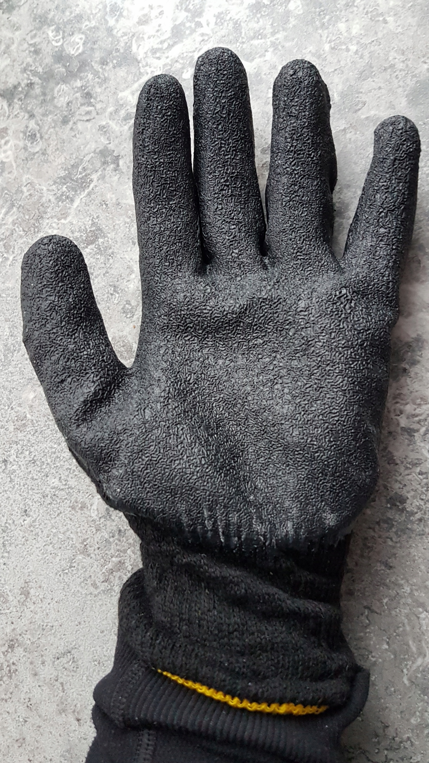 Rękawice ochronne wykonane z dzianiny, powlekane.