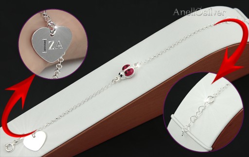 Гарний дитячий браслет на руку з сонечком і сердечком для гравіювання, повністю виготовлений зі срібла 925 проби.