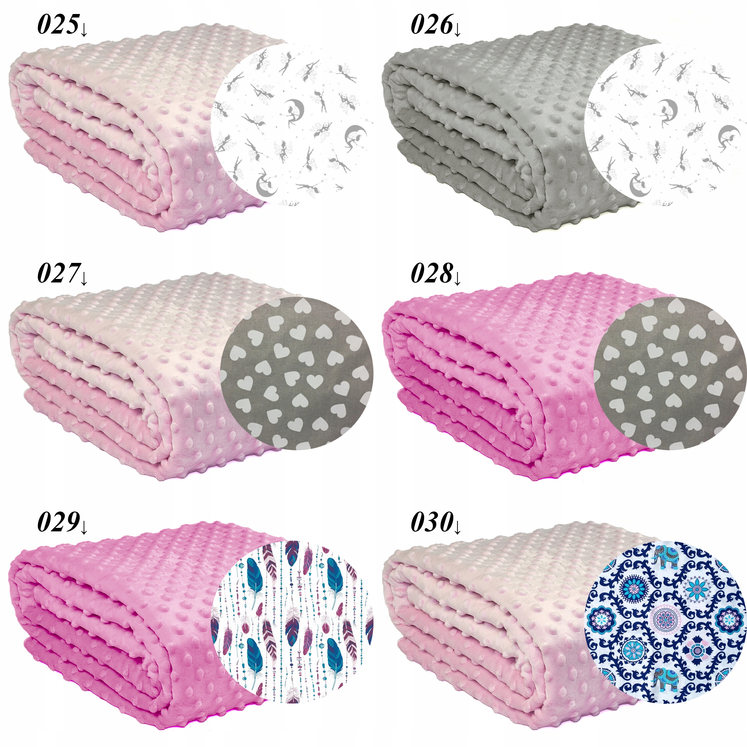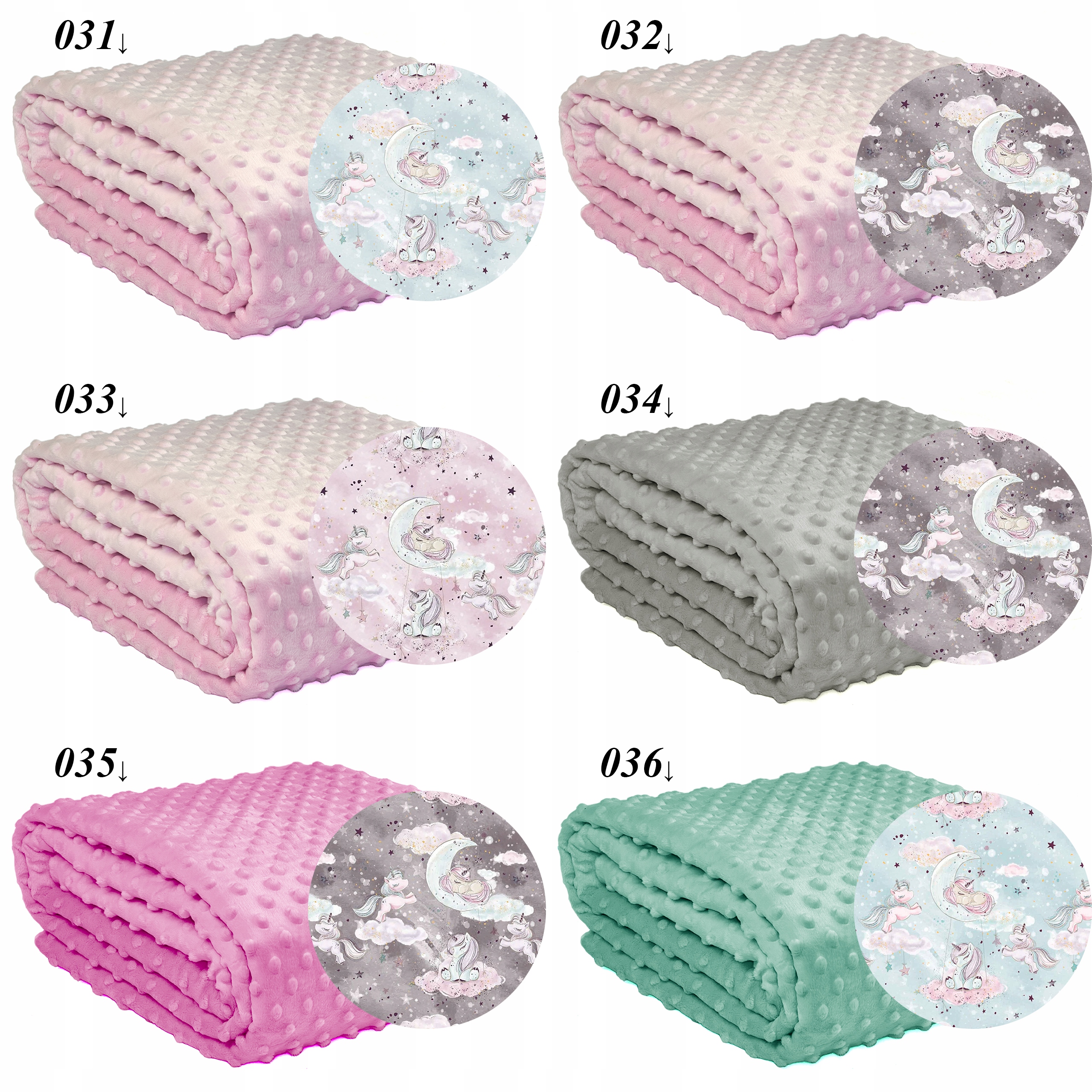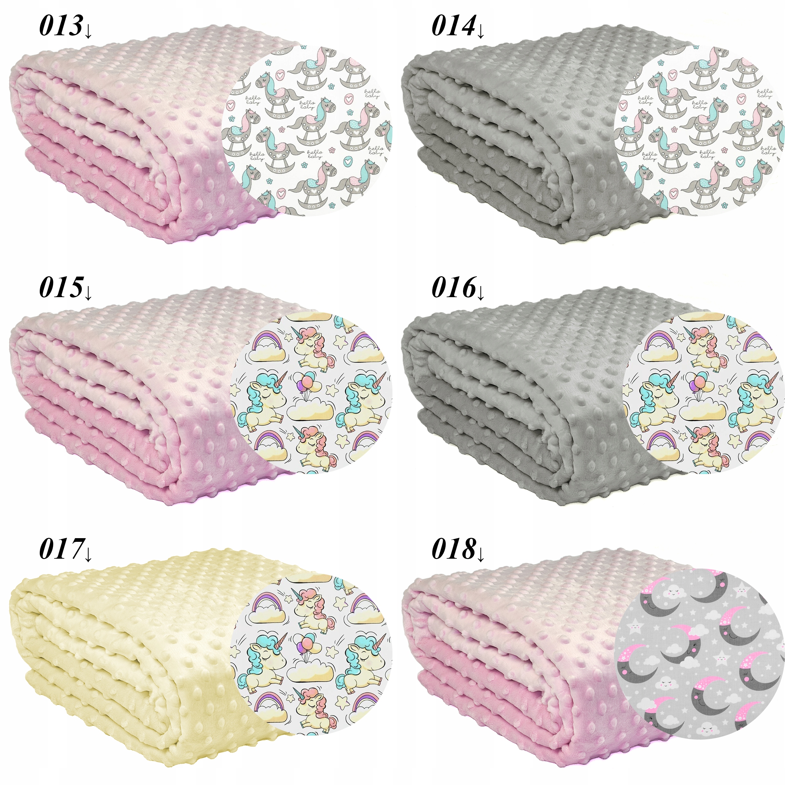 - Minky o gramaturze do 560g (waga minimum 520g, 330g/m2). Wysoka jakość Minky gwarantuje, że tłoczone kropeczki nie znikną nawet po wielu praniach. W przeciwieństwie do tańszego zamiennika (o niższej wadze) nasza tkanina jest gęsto tkana, bardzo przyjemna w dotyku i nie jest tak rozciągliwa.