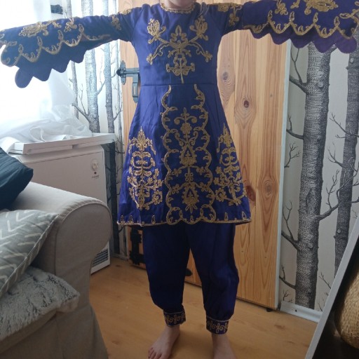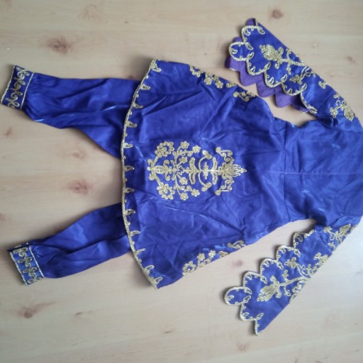 Костюм із двох частин. Штани з еластичною талією і клейкими манжетами. Гра застібається ззаду на блискавку. Для стрункої дитини.