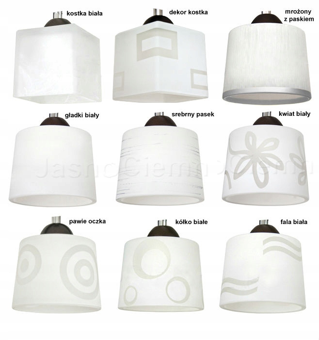 - klosz (do wyboru abażury PVC lub klosze szklane)