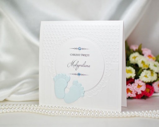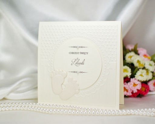 додатково прикрашений дитячими ніжками, вирізаними з перламутрового паперу.