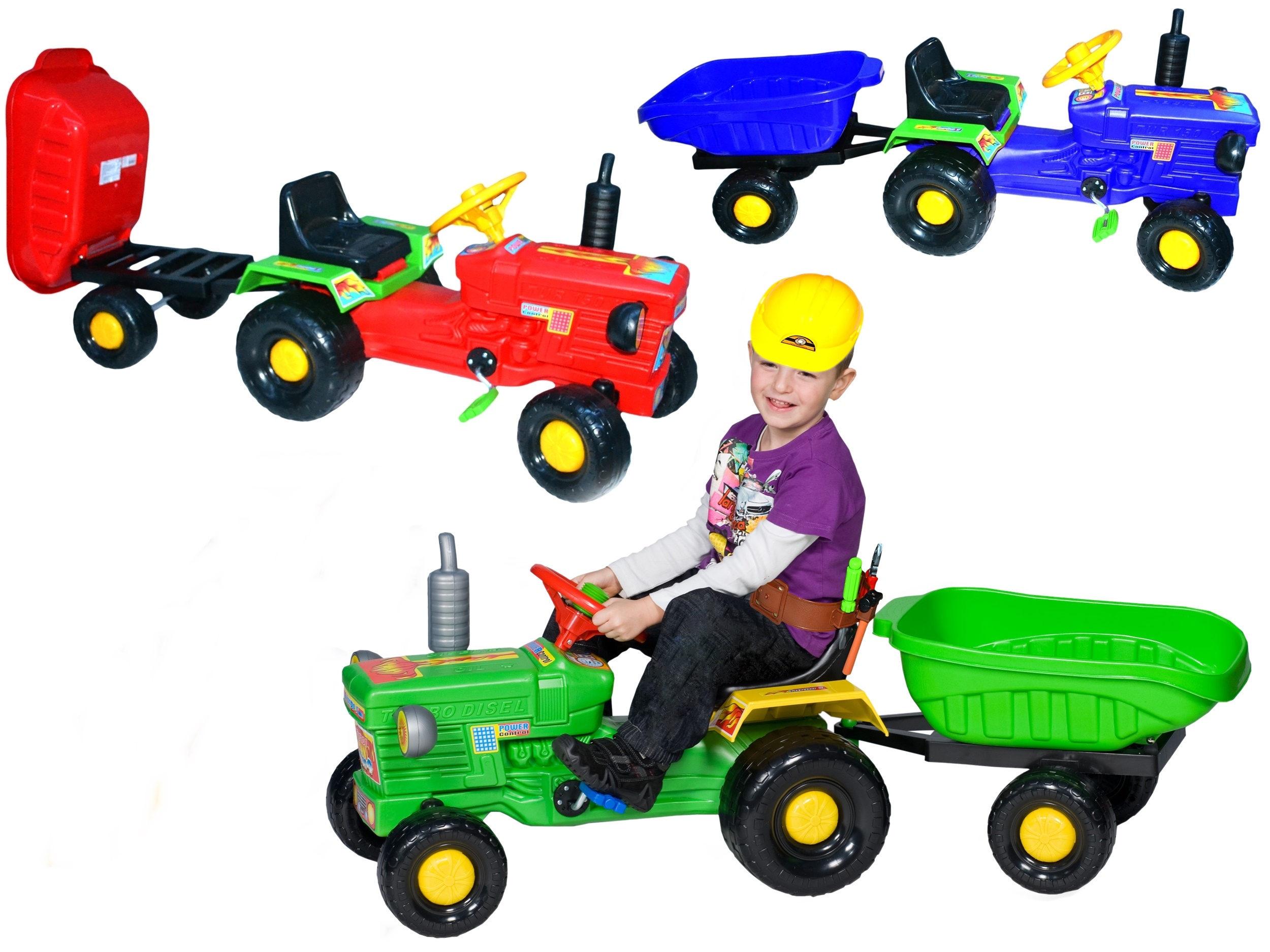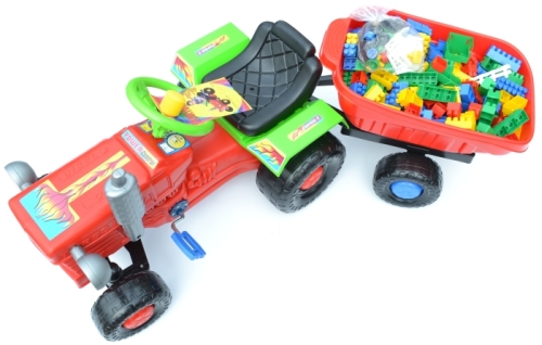 Traktor + przyczepa + klocki 50 el + kask+ DUŻA ŁOPATA