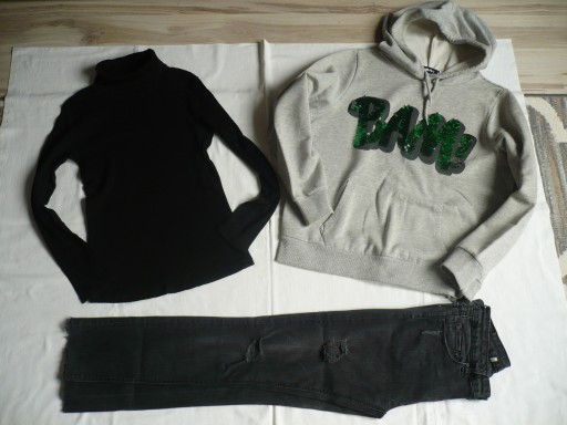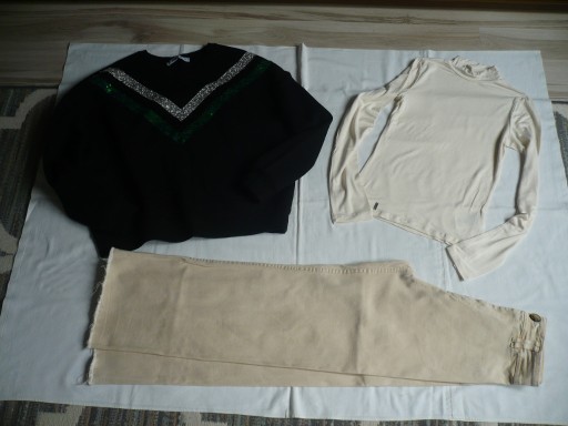 Доброго дня, пропоную набір з 17 предметів до школи на сезон осінь/зима для стрункої дівчини/підлітка, розмір 158/164+, 13/14+ років (дочка носить у вказаному розмірі та віці). Комплект одягу б/в,стан новий(тільки випрані зелені спортивні костюми,чорний світшот,кремова блузка),дуже хороший і гарний.Одяг також відомих брендів.В комплект входить:ватка+шапка+шарф/шарф,4х спортивні штани,джинси з дірки, широкі штани шведки, тканина, 4x світшоти на блискавці, 3x блузка/водолазка, спідниця на підтяжках, колготки, сумочка.