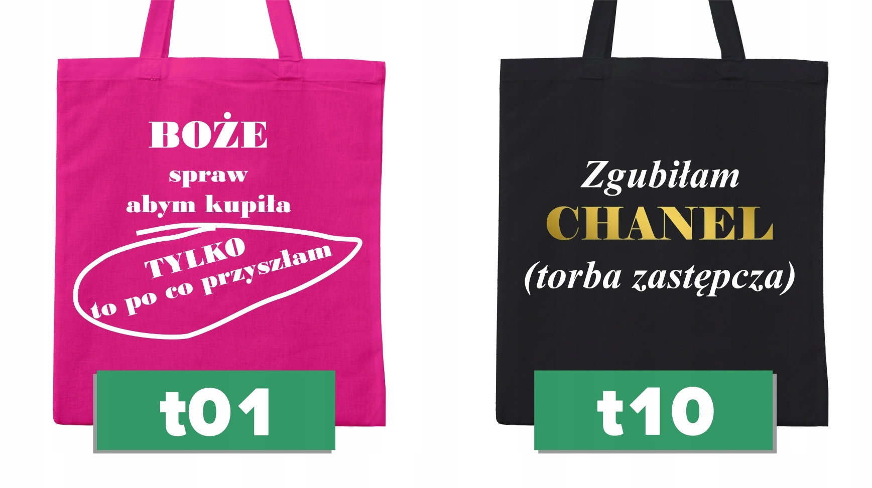 - W miejscu “Wiadomość dla Sprzedającego” podaj wybrane nazwy wzorów nadruków oraz kolor torby (np. t307 biała, t191 czerwona)