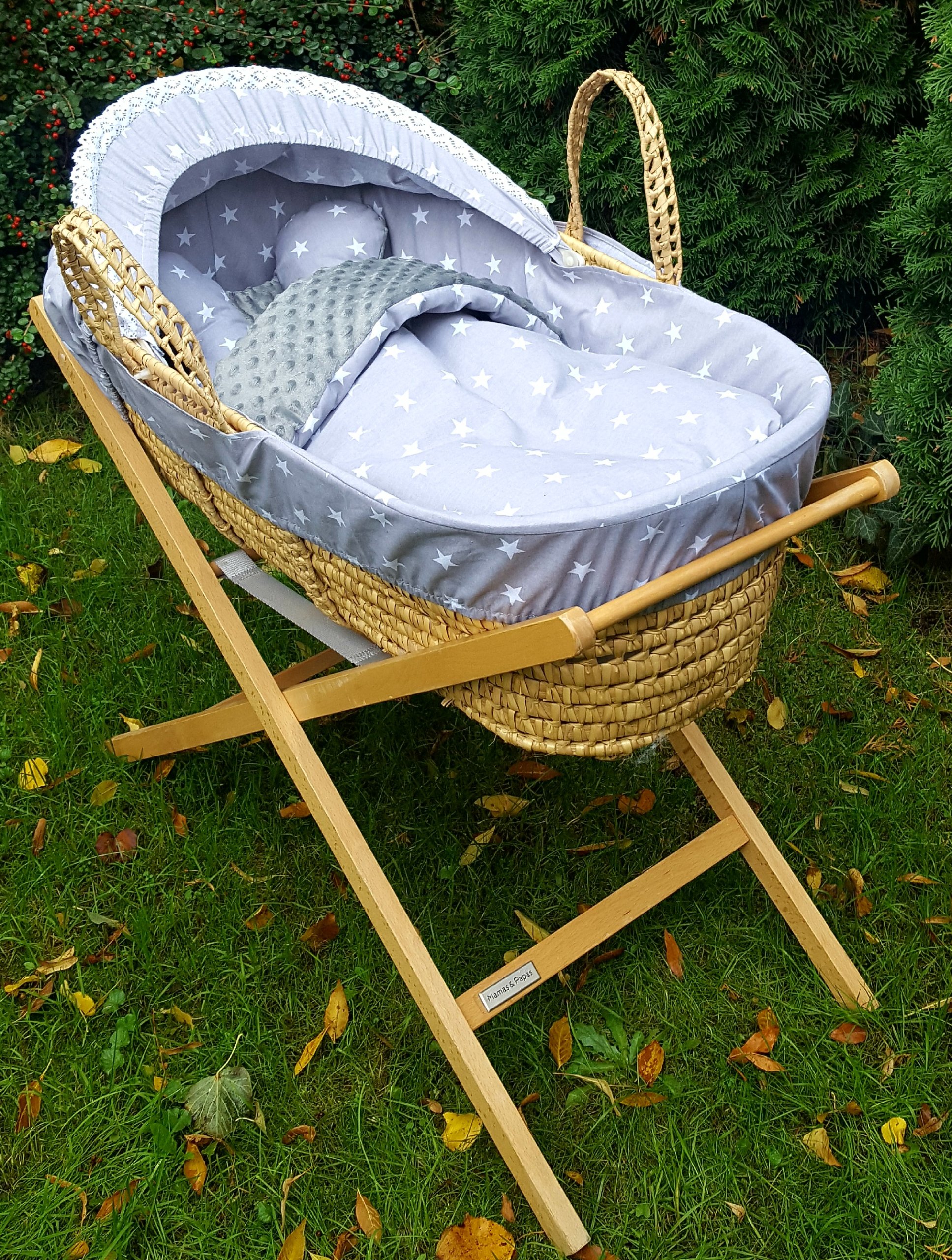 Wkładka, poduszka i kocyk wykonane są z minky z jednej strony i bawełny z drugiej.