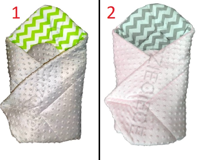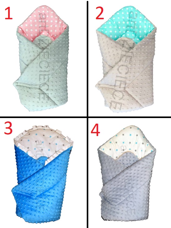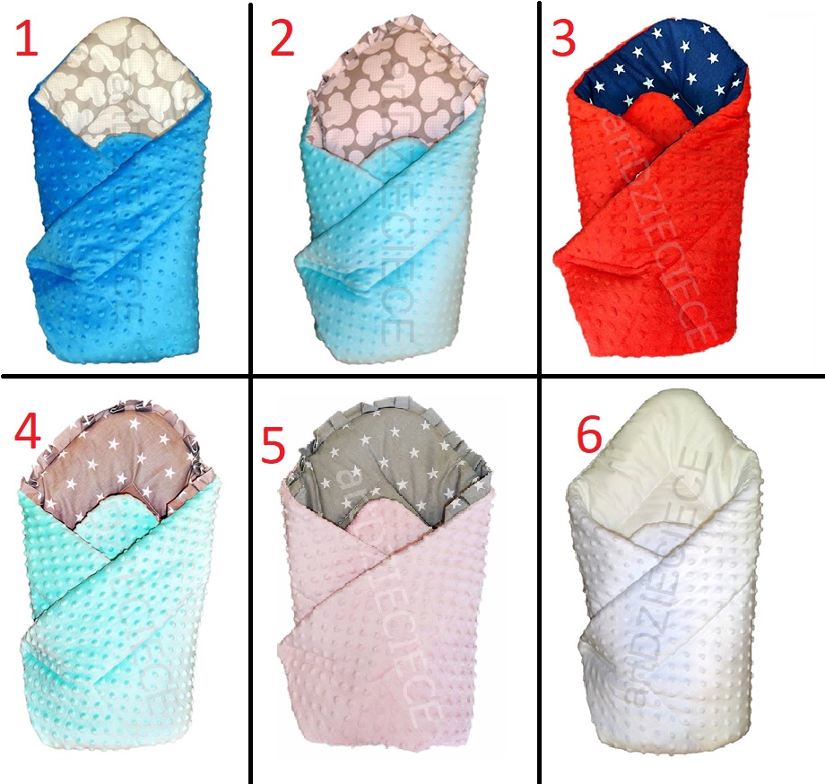 Rożek/becik zapinany jest na rzep, wykonany z atestowanej włókniny pokrytej 100% bawełną + MINKY.