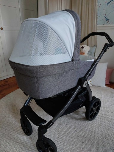 (можливість установки в обох напрямках руху та складання коляски з сидінням, регульована підніжка, дуже довгий навіс, фільтр UPF 50+);