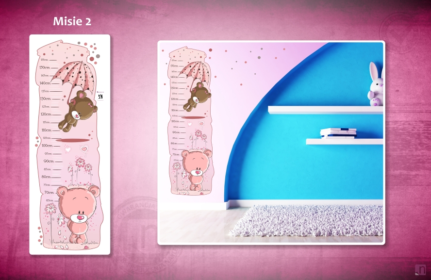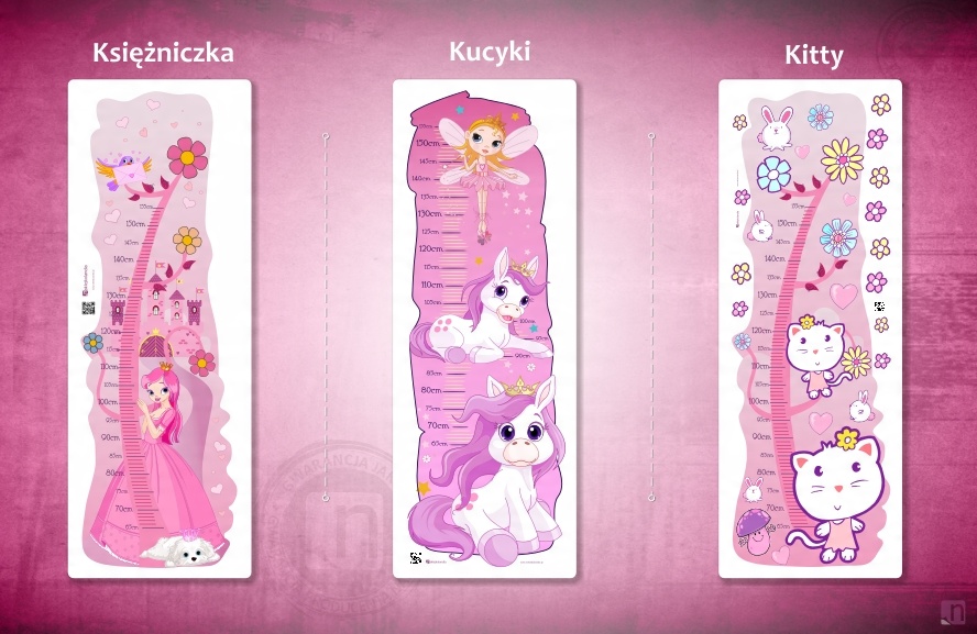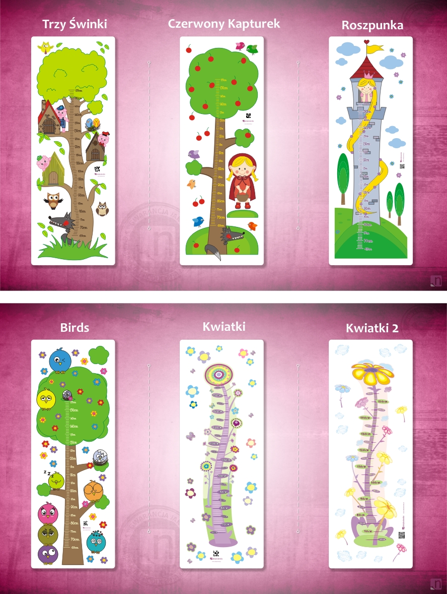 Przedmiotem sprzedaży jest naklejka ścienna z miarką wzrostu, wykonana z folii matowej, wycięta po obrysie (każdy element można nakleić osobno).