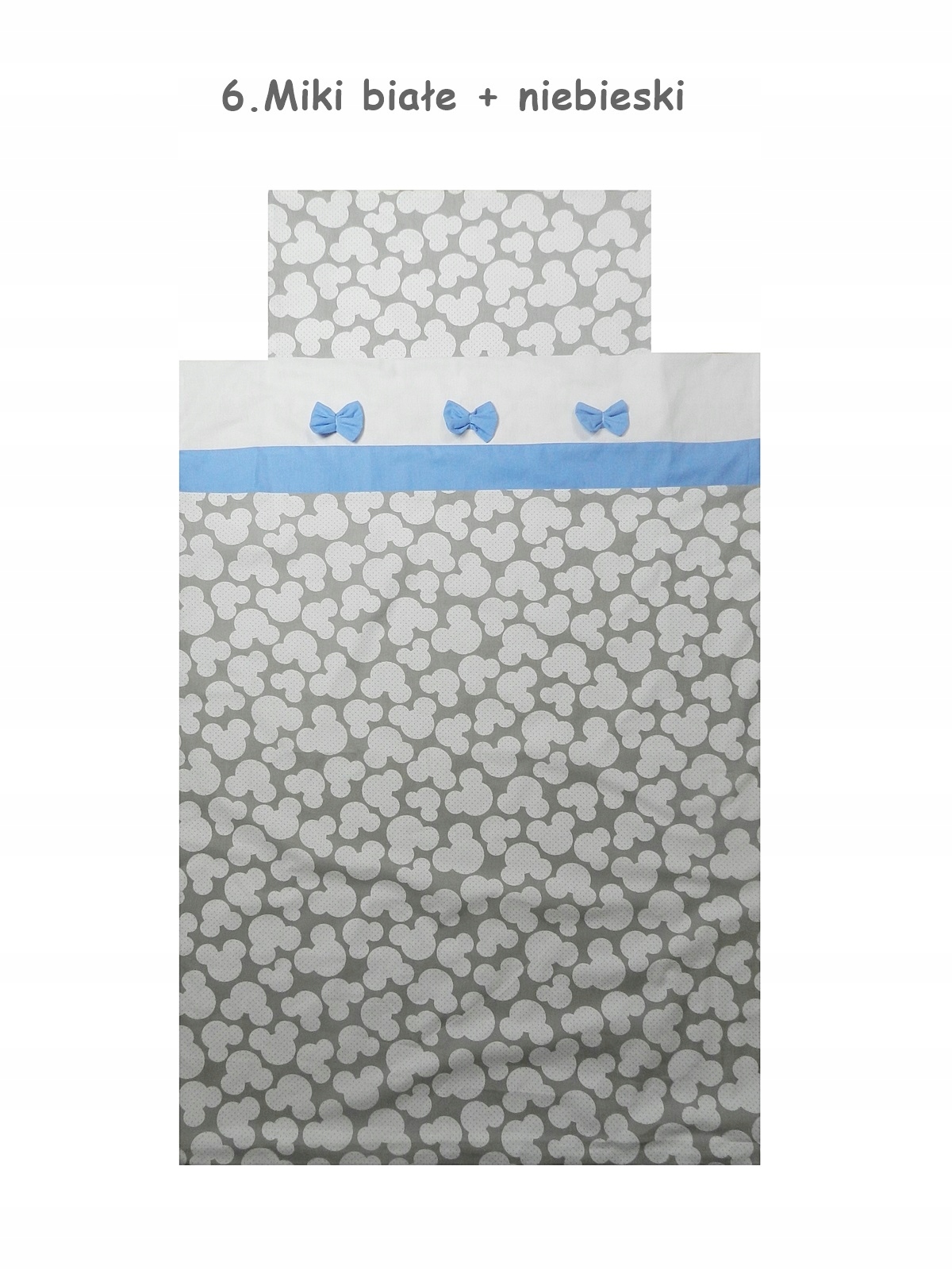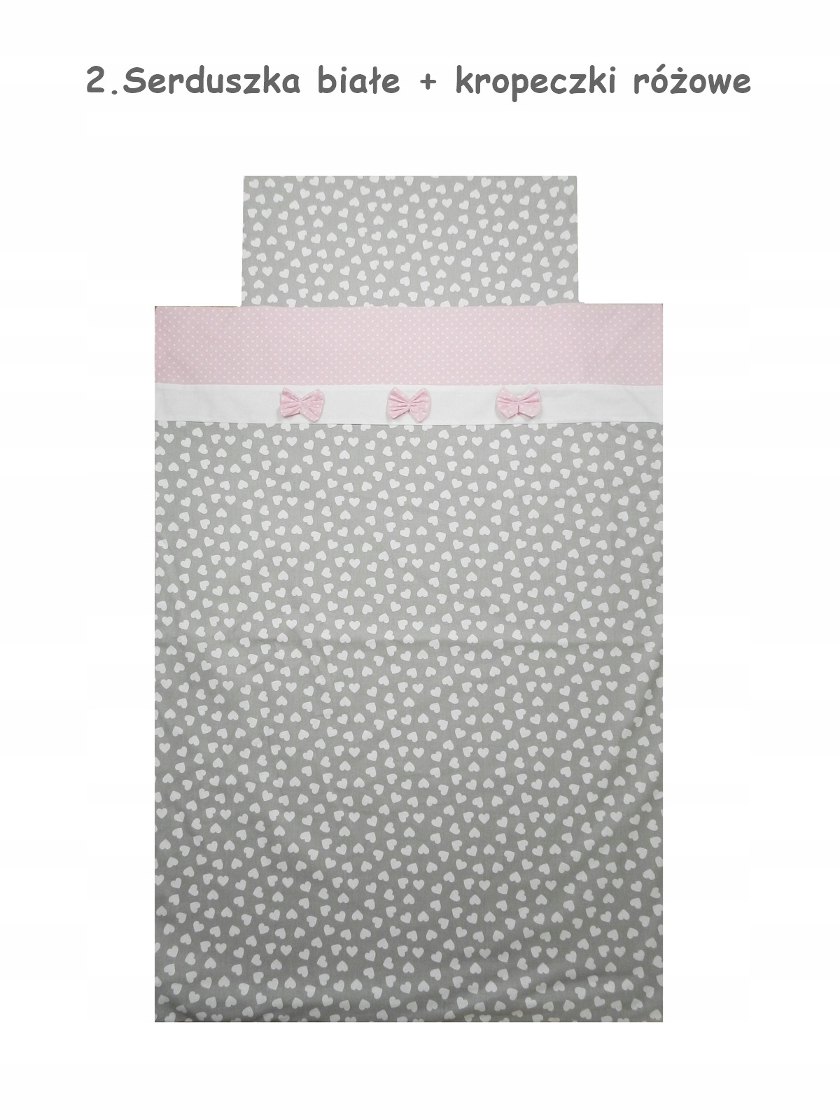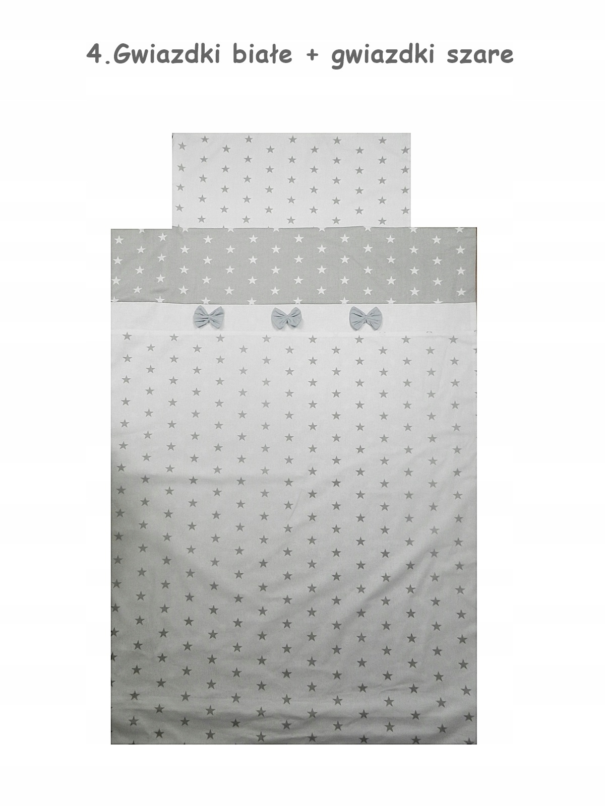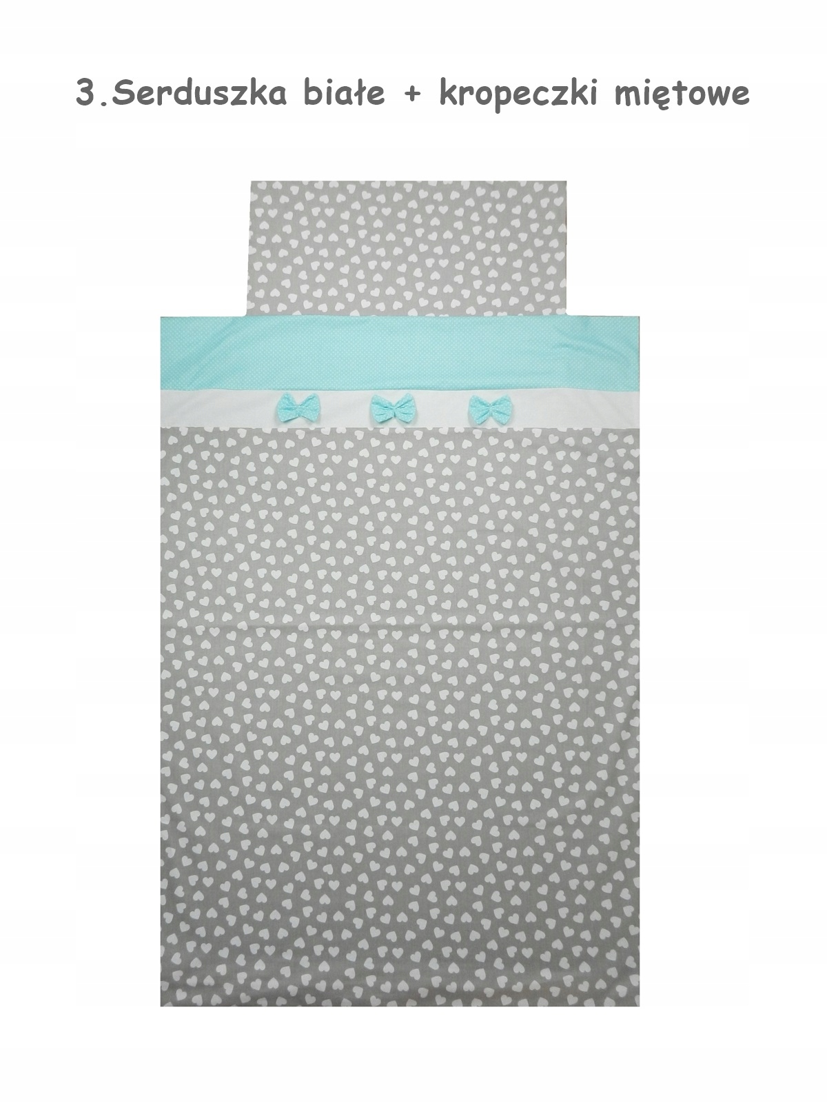 2. Poszewka na kołderkę 90/120 uszyta z dwóch kolorów bawełny 100% ozdobiona kokardkami, zapinana na bezpieczny suwak.