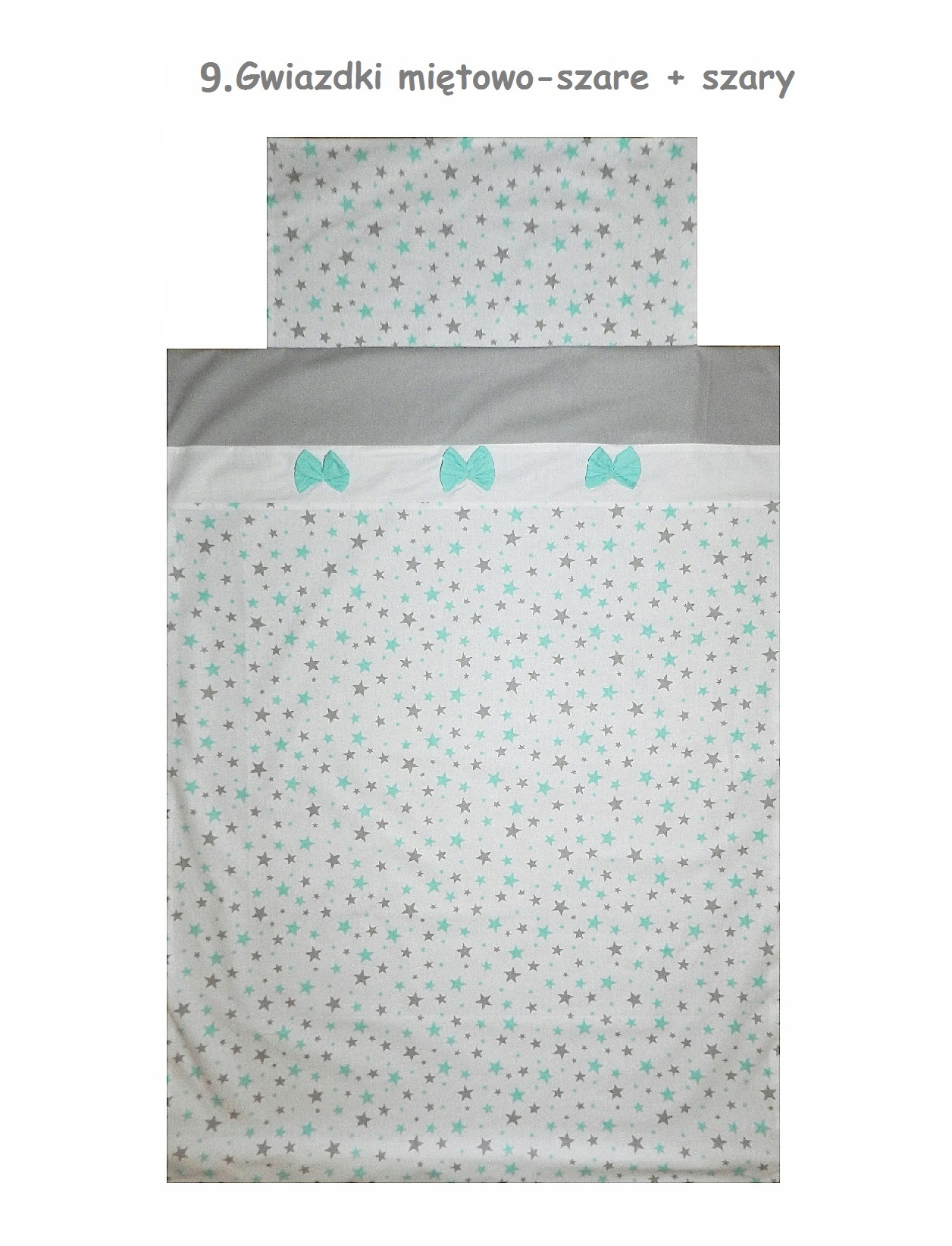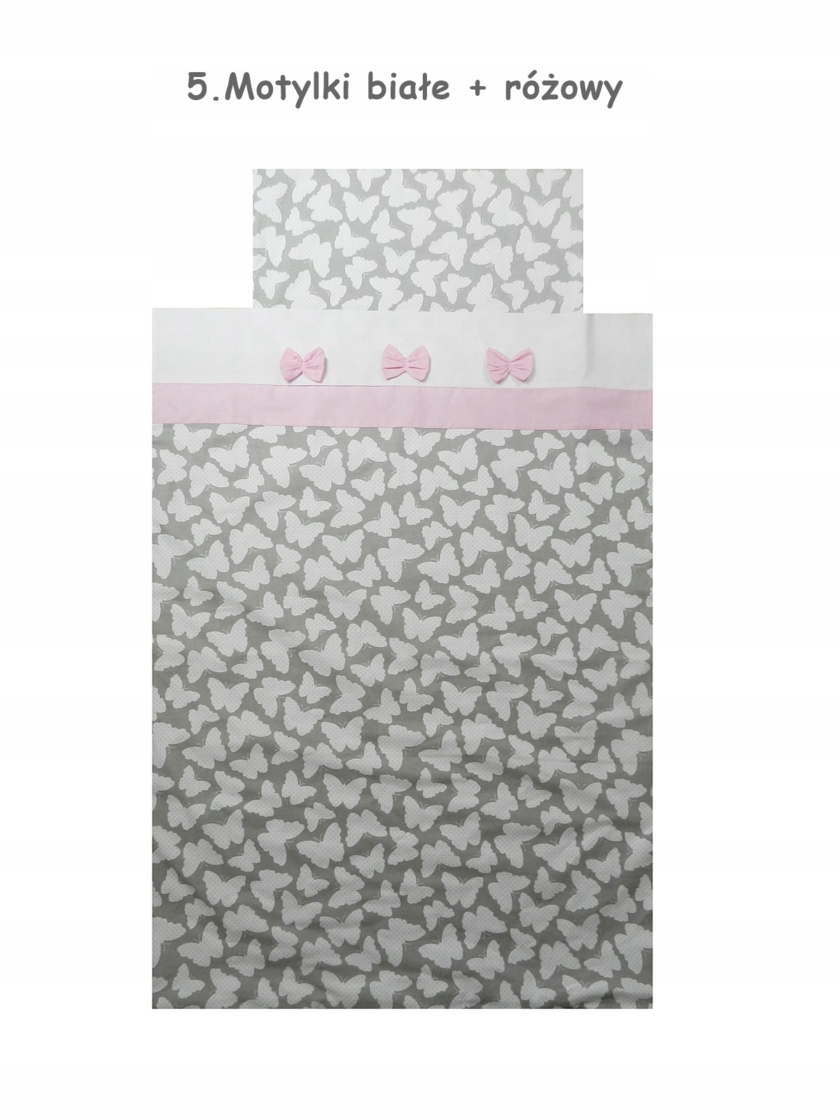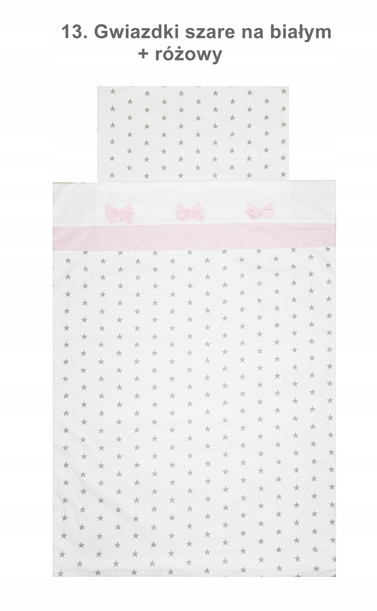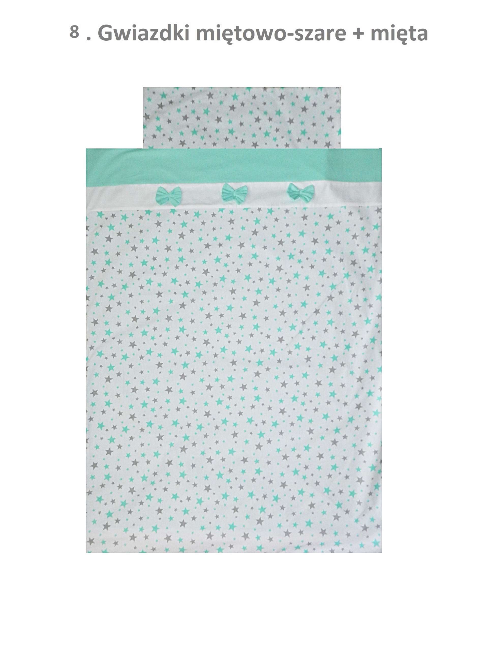 2. Poszewka na kołderkę 90/120 uszyta z dwóch kolorów bawełny 100% ozdobiona kokardkami, zapinana na bezpieczny suwak.