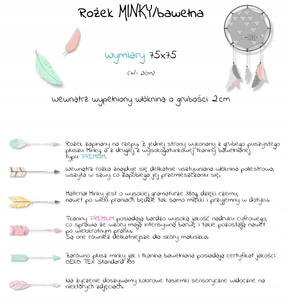 Po zakupie proszę o podanie wzoru TKANINY BAWEŁNIANEJ oraz koloru MINKY z której ma zostać wykonany rożek