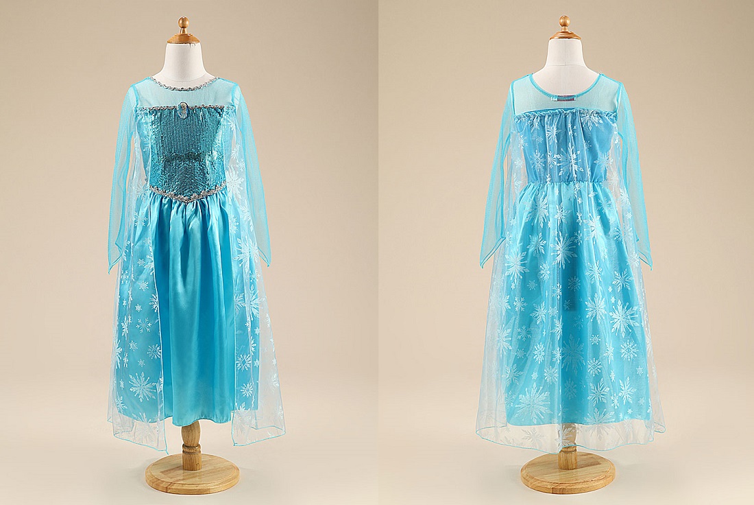 Nowa sukienka Królowej Elsy z bajki Kraina Lodu. Rozmiar na dziecko w wieku 5-6 lat (rozmiar z metki 130). Oryginalny produkt marki COGIO KIDS ITALY. W przeciwieństwie do łudząco podobnych sukienek sprzedawanych przez innych sprzedawców - nasz produkt posiada materiałową przyszytą metkę COGIO KIDS ITALY oraz dodatkową papierową metkę producenta z wieloma informacjami (między innymi jak prać i prasować produkt - w języku polskim oraz angielskim).