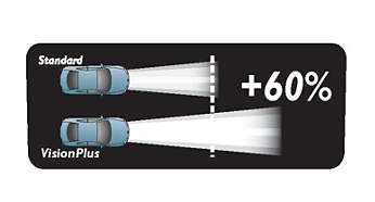Żarówki VisionPlus pozwalają skrócić czas reakcji w wyniku wcześniejszego rozpoznawania przeszkód i znaków drogowych. Także światła stopu są widoczne wcześniej dzięki mocniejszemu strumieniowi światła. Dzięki temu kierowcy mogą skrócić o trzy metry drogę hamowania z prędkości 100 km/h. Oświetlenie jest niezbędne do bezpiecznego prowadzenia pojazdu, a zarazem stanowi podstawowy i jedyny element układu bezpieczeństwa, który naprawdę pomaga zapobiegać wypadkom.