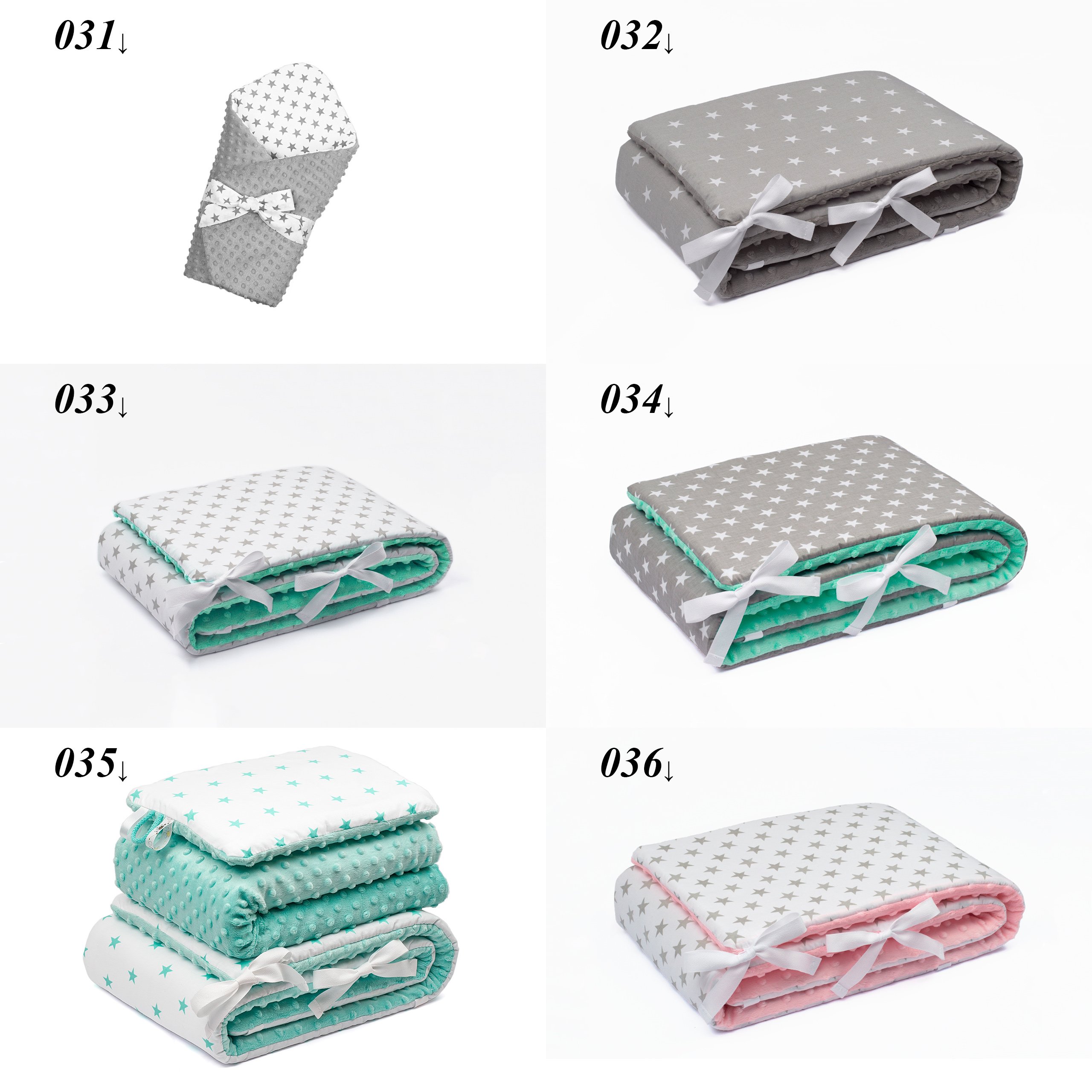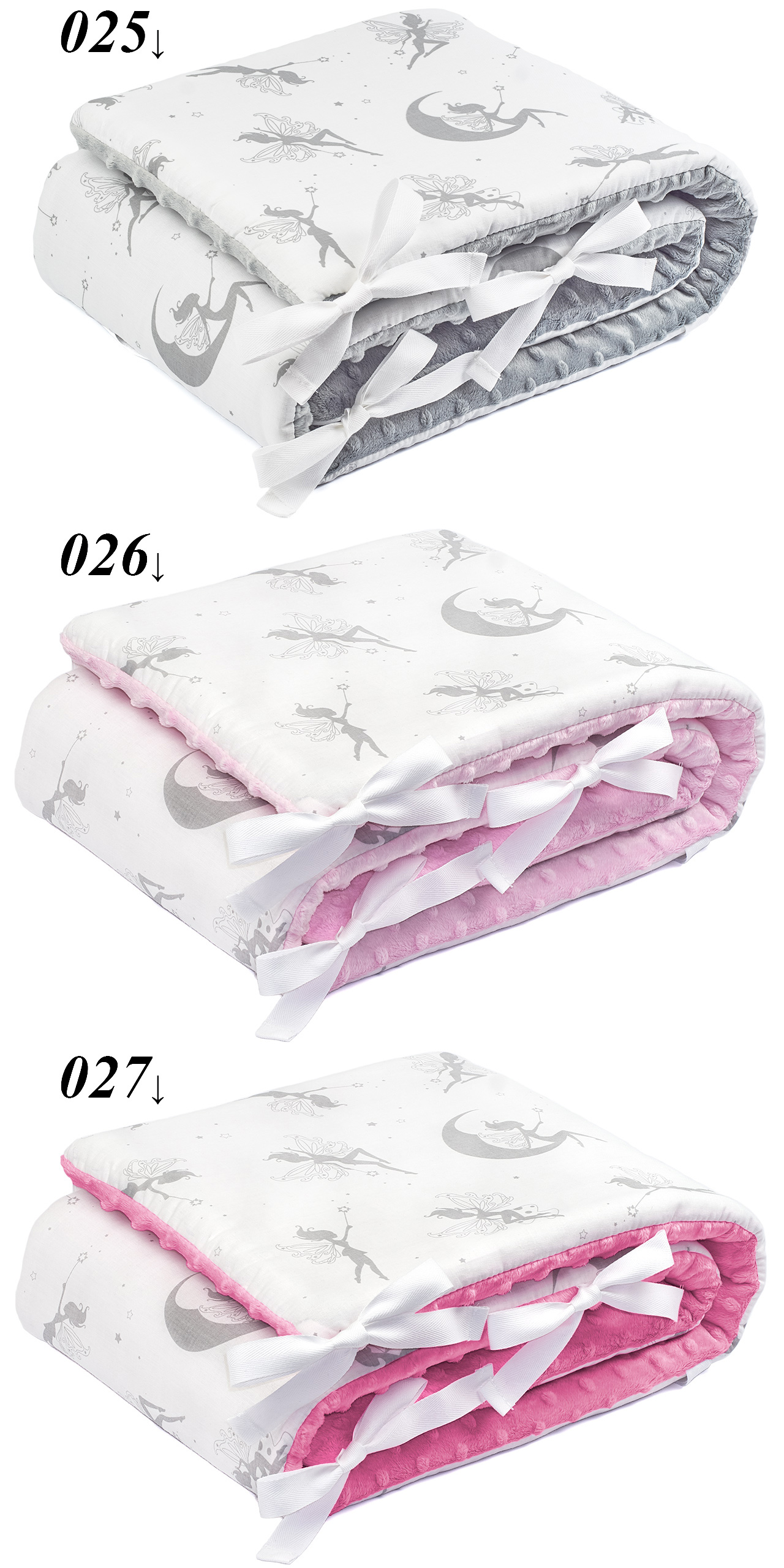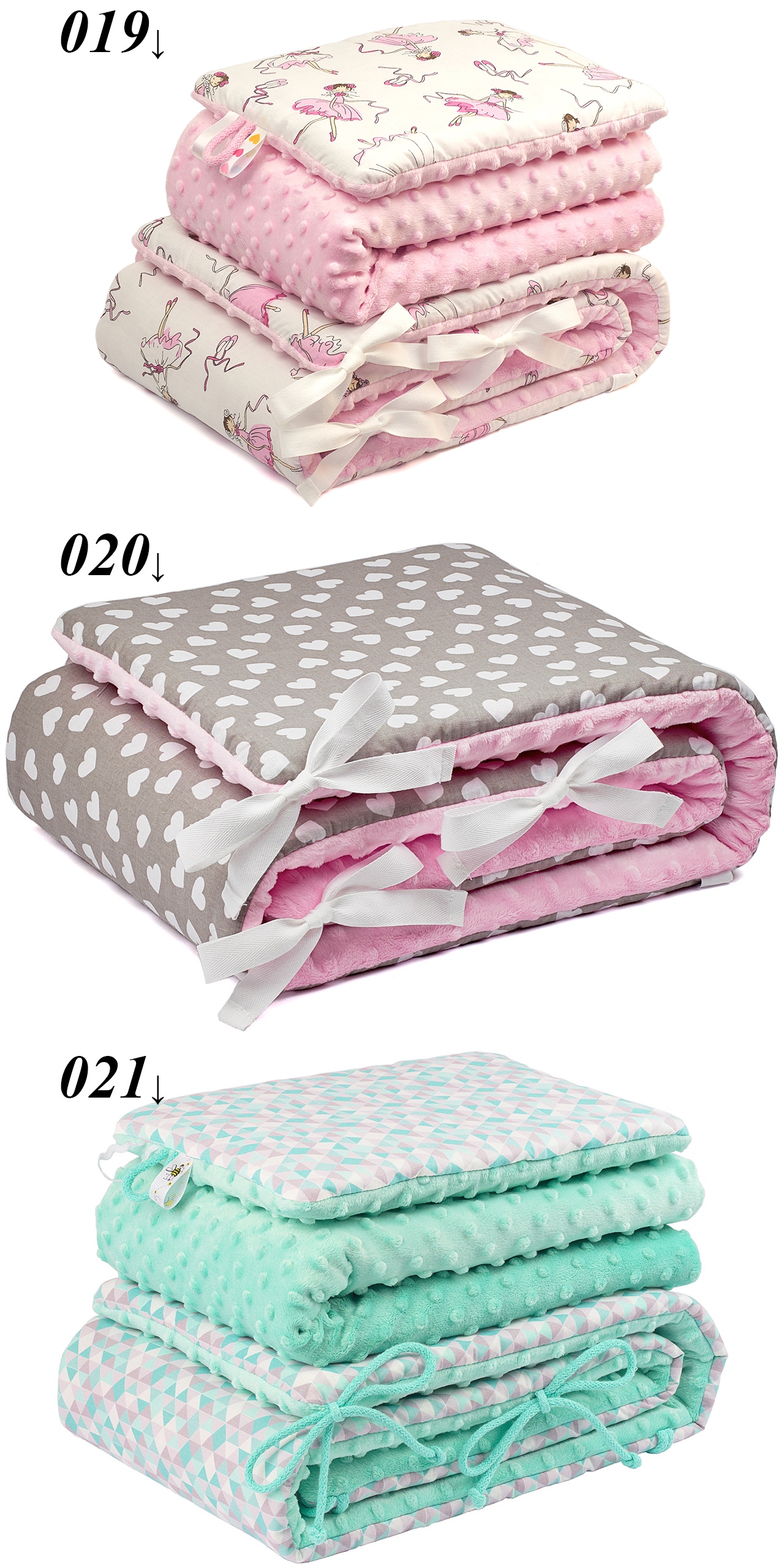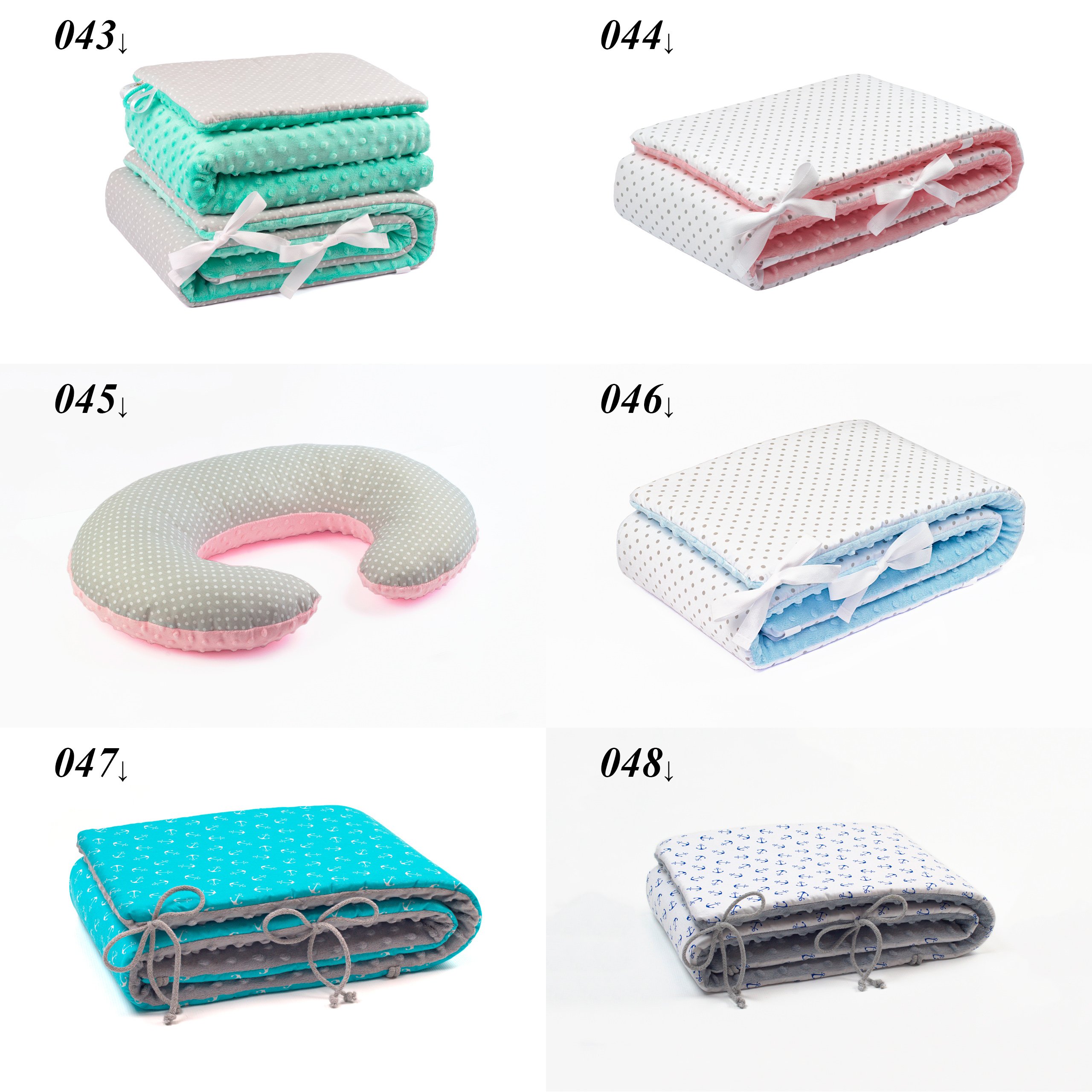 Przedmiotem sprzedaży jest zestaw do łóżeczka/kołyski wykonany z wysokiej jakości bawełny (100%) i niezwykle przyjemnej w dotyku tkaniny typu Minky o wysokiej gramaturze do 560g (waga minimum 520g, 330g/m2). Dzięki wysokiej jakości Minky charakterystyczne wypukłe kropeczki nie znikną w praniu.