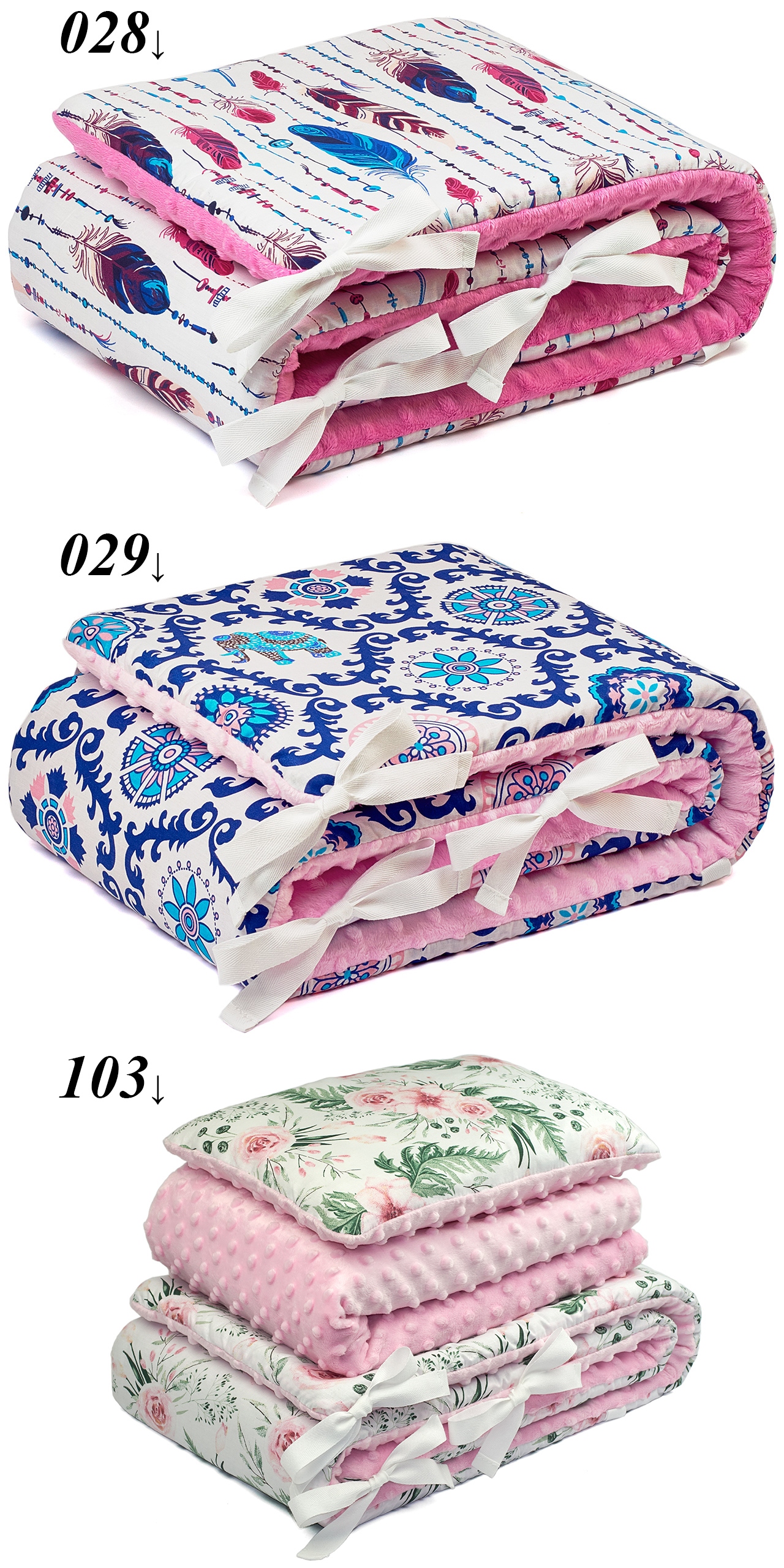 Poduszki oraz kocyki nie posiadają ozdobnych tasiemek (nawet jeśli na zdjęciach są widoczne). Tasiemki wszywamy tylko na życzenie (bez dopłaty).