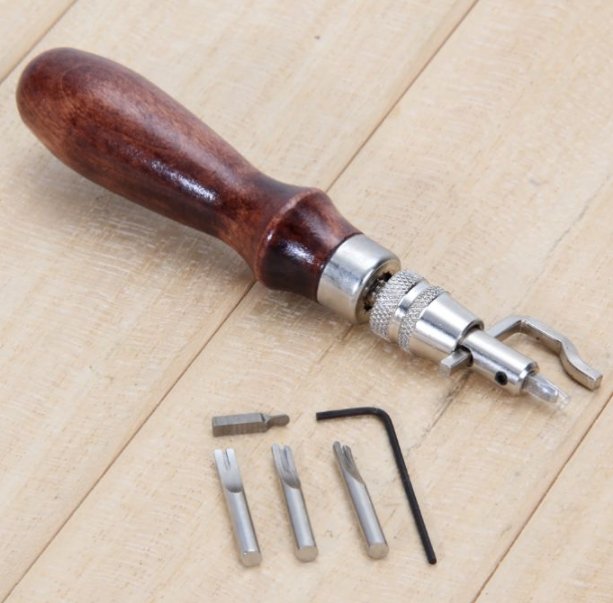 3. do ścinania krawędzi skóry (edge beveler)W zestawie mały imbus.