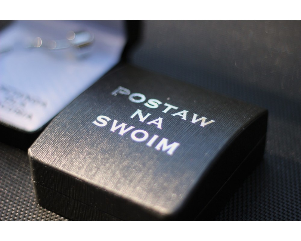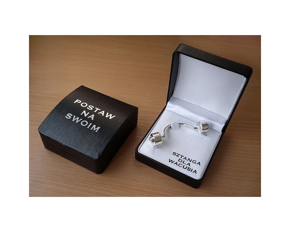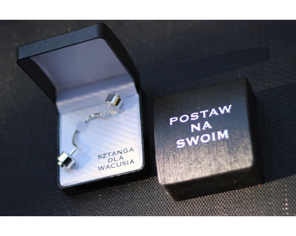 Sztanga zapakowana jest w eleganckie pudełeczko, przypominające etui na zegarek.