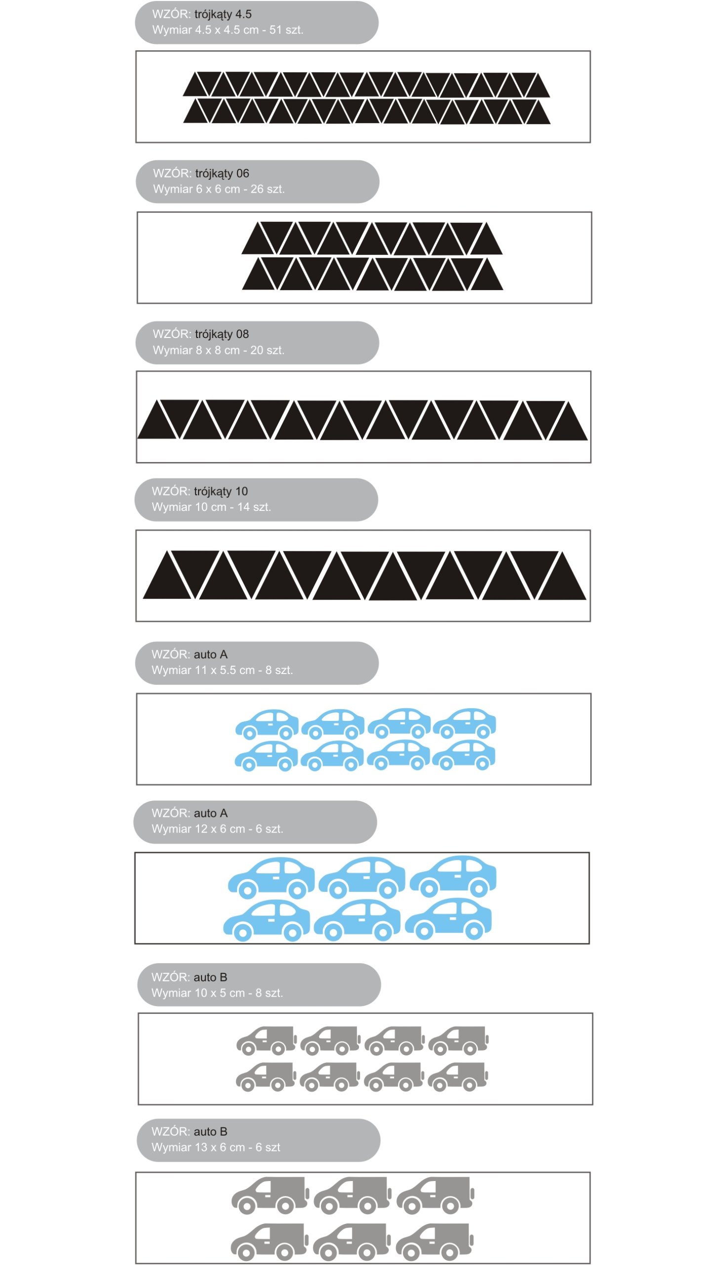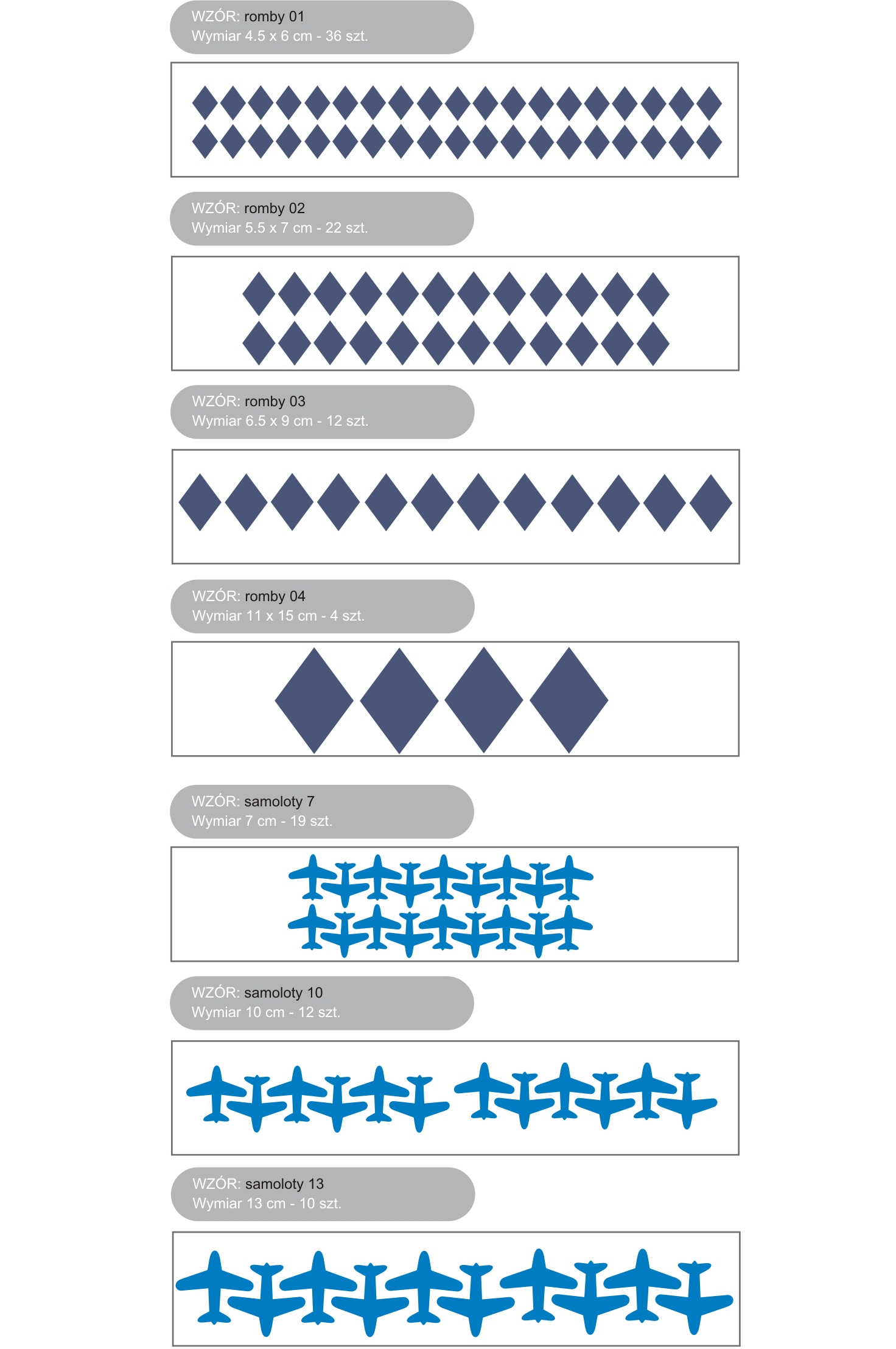 Kupując na tej aukcji jedną sztukę kupujesz jeden arkusz naklejek do wyboru z poniższych wzorów.