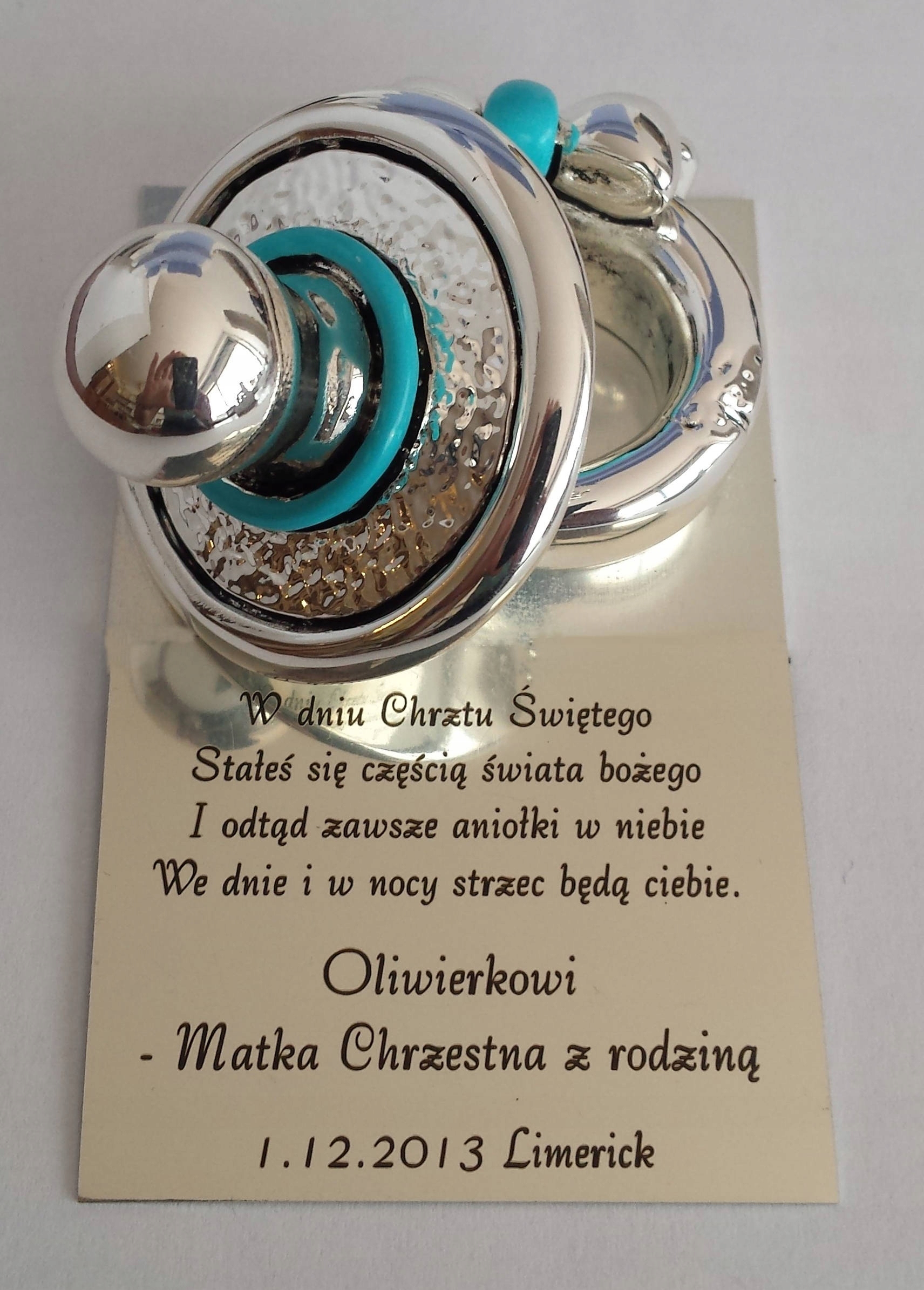 Doskonałym dodatkiem może być dedykacja wygrawerowana na metalowej płytce.