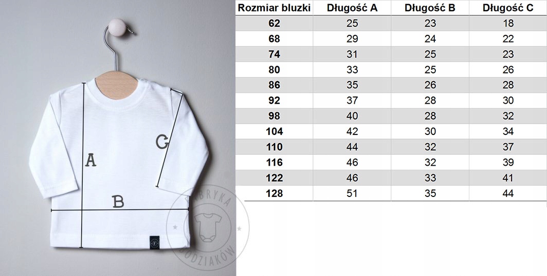 - Na pozostałych naszych aukcjach bluzki są dostępne także w rozmiarach 68, 80, 86, 92, 98, 104, 110, 116, 122, 128.