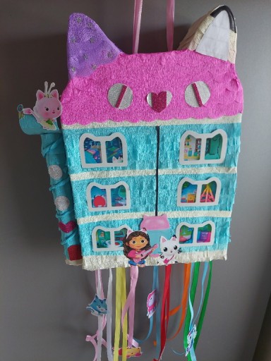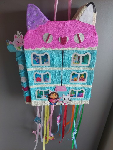 Привіт;), пропоную піньяти в різних дизайнах за бажанням замовника Ось будиночок для кота Габі, варіант з паличкою. можлива персоналізація, запитуйте інформацію.