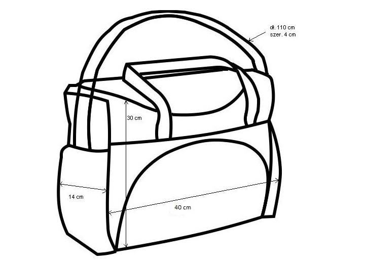 Pojemna, praktyczna, solidnie wykonana torba, niezastąpiona podczas spacerów i podróży. Wykonana z atestowanych, impregnowanych (wodoodpornych) tkanin stosowanych do produkcji wózków dziecięcych. Wewnątrz znajduje się czarna nieprzemakalna podszewka, cała torba usztywniona jest pianką PUR. Wewnątrz torby znajdują się niezbędne przegródki, które idealnie uporządkują wszystkie znajdujące się w niej akcesoria, dodatkowo po bokach znajdują się gumki dla podtrzymania butelek w pozycji pionowej. Na zewnątrz po bokach znajdują się kieszenie na butelki. Z przodu kieszeń zapinana na zamek na drobne akcesoria i dokumenty. Torba posiada krótkie uszy do noszenia w ręku oraz długi odpinany pasek z napami, który umożliwia zapięcie na rączce wózka oraz noszenie na ramieniu. Torba jest uniwersalna pasuje do każdego wózka.