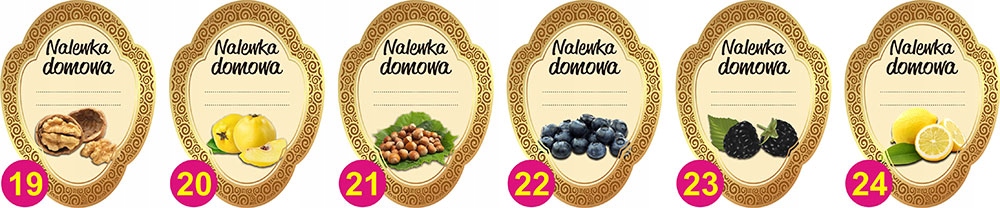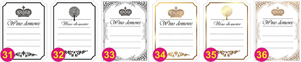 Możliwość bezpłatnej zmiany napisu na "Wino domowe", "Nalewka domowa", "Sok" na każdym z proponowanych poniżej wzorów.
