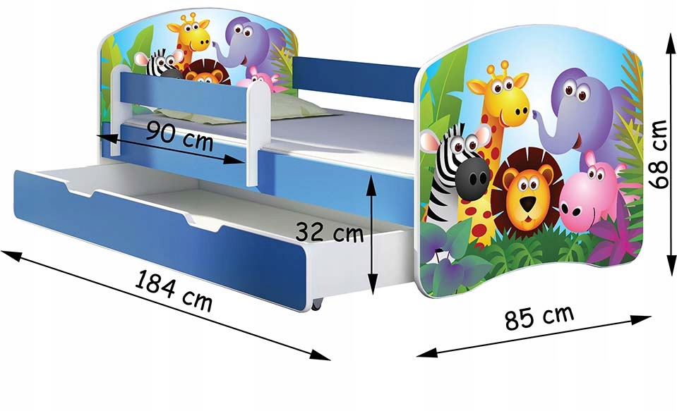 Łóżko dziecięce ACMA II 180x80 z szufladą + materac gratis, Kolor: niebieskie (inne kolory dostępne na pozostałych aukcjach)