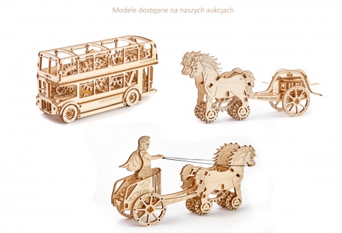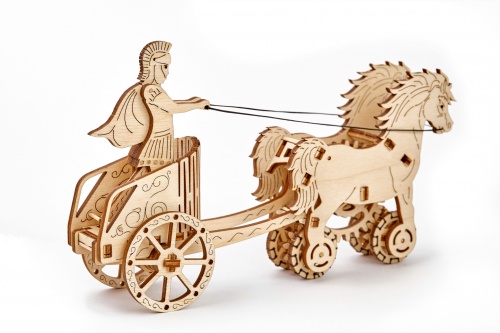 Wooden.city пропонує вашій увазі механічну модель римської колісниці, яка складається з кінної упряжки та бойової колісниці з легіонером.