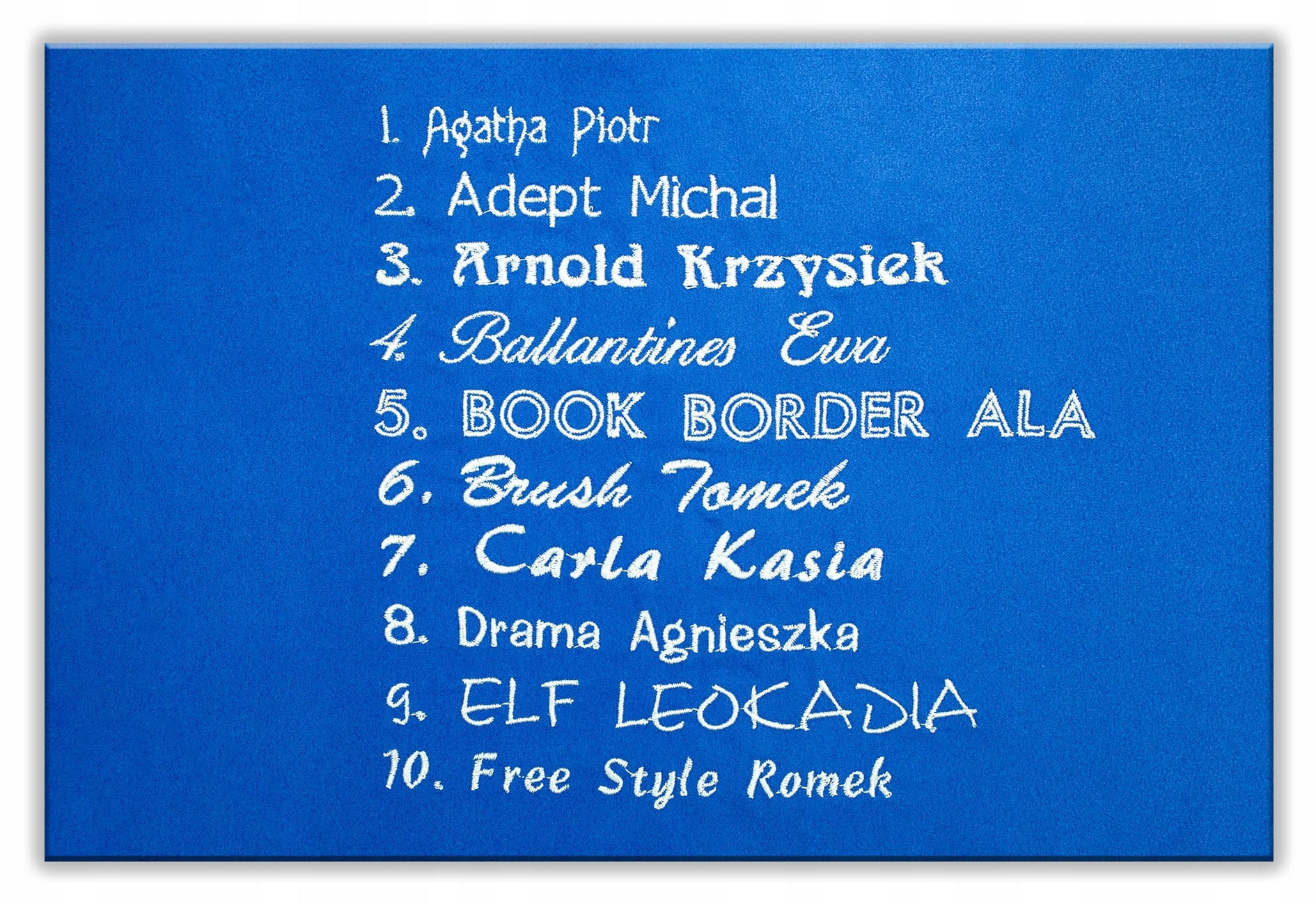 Po dokonaniu zakupu prosimy o podanie koloru podkładu, nici i czcionki: