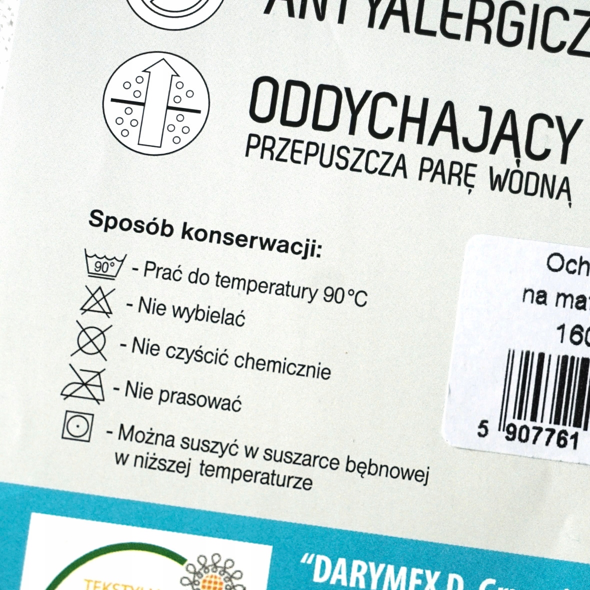 - Można go prać w 95 stopniach co zabija większość mikroorganizmów i roztoczy