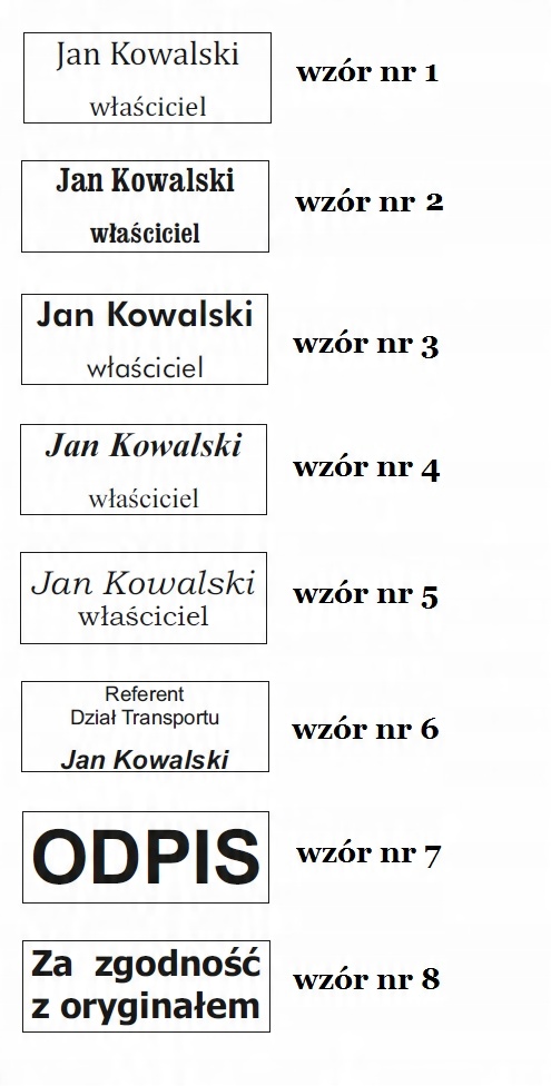 3. Wzór pieczątki (opcjonalnie można podać nr wzoru).